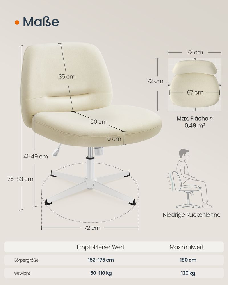 【ADEMEND】De bureaustoel, bekleed met een katoen-linnenmix, is comfortabel op de huid en ademend, zodat u koel blijft, zelfs na urenlang zitten.