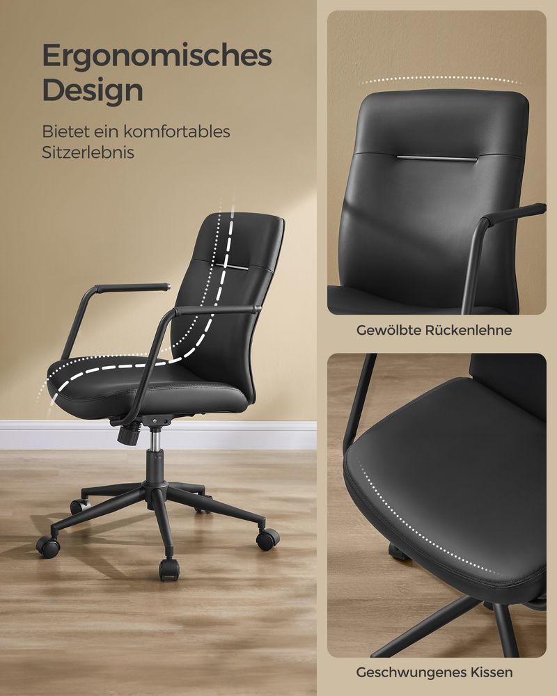 SEGENN Novara Inktzwarte Kantoorstoel met Gebogen Zitting en Stevige Rugleuning-Stijlvolle Inktzwarte Bureaustoel met Ergonomisch Ontwerp