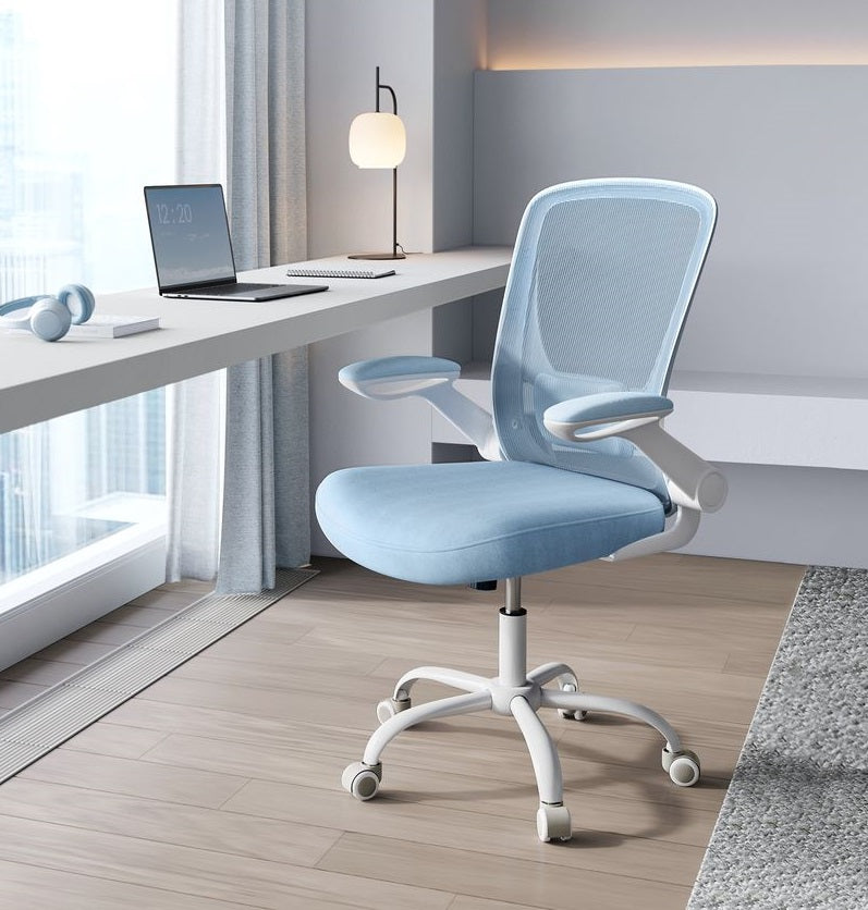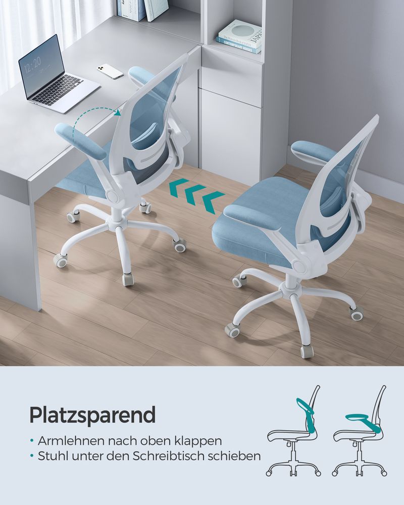 SEGENN Perugia Ergonomische Bureaustoel met Opklapbare Armleuningen – Mistblauw Comfort-Rugondersteuning
