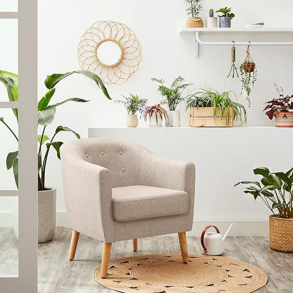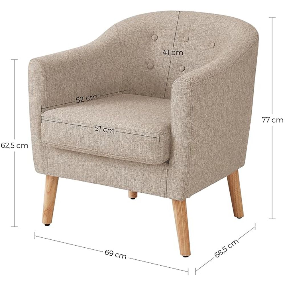 Overal charmant: Het woord "charmant" komt in je op als je deze fauteuil van VASAGLE ziet. De stijlvolle kuipvorm, schuine houten poten, decoratieve knoppen en uitnodigende beige afwerking - "Hier verlang ik naar!"