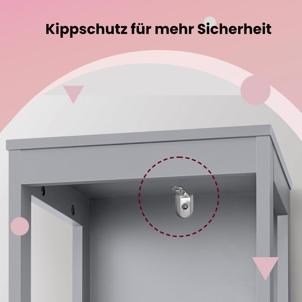 Betrouwbaar en duurzaam: Gemaakt van hoogwaardige MDF-panelen, is deze kast ontworpen voor een lange levensduur. De kantelbeveiliging zorgt voor extra veiligheid en stabiliteit.