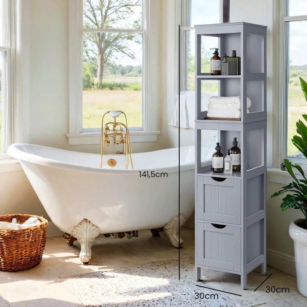 Segenn's Bari Hoog vrijstaand badkamermeubel met deuren en planken – ruime badkamerkast voor georganiseerde opslag