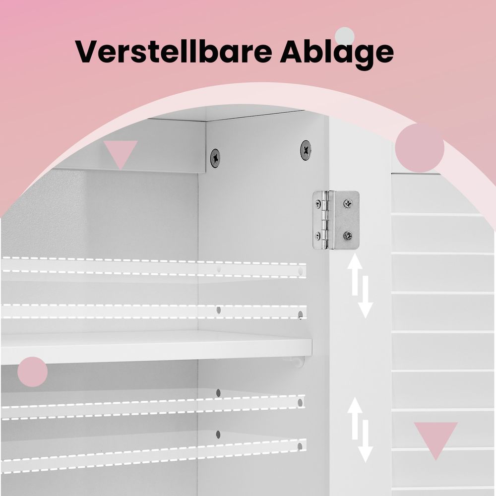 Stijlvol en veelzijdig: Met zijn elegante kleur en lamellendeuren past deze kast naadloos in verschillende interieurstijlen.