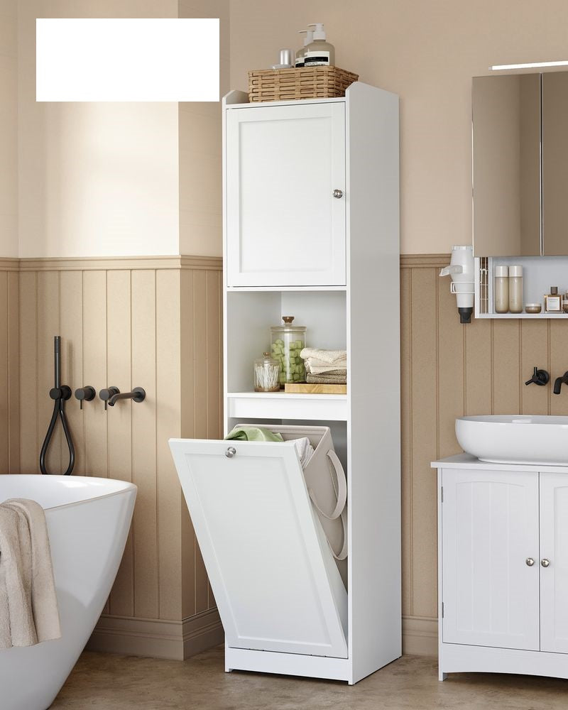 【RUIM EN VEELZIJDIG】De kast heeft een plank met opstaande randen, een klein opbergvakje, een open plank voor veelgebruikte spullen en een wasmand.