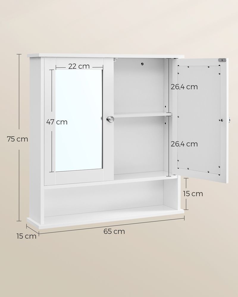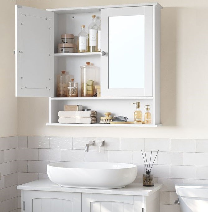 [Praktische spiegeldeuren] Deze badkamerkast heeft twee spiegeldeuren, waardoor je je 's ochtends gemakkelijk kunt scheren of make-up kunt aanbrengen. Begin elke dag op je best!