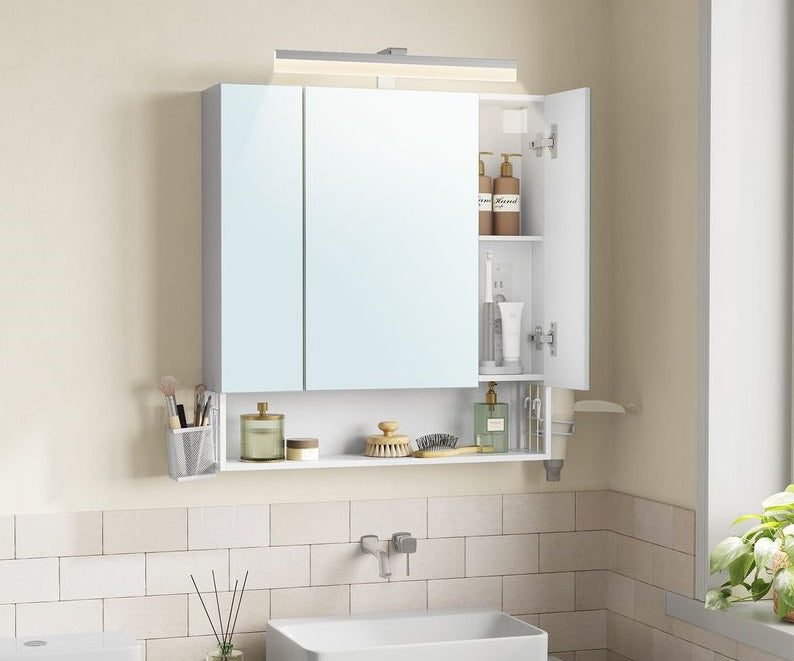 [Doordacht ontwerp] Het bovenste deel van de spiegelkast is voorzien van een lichtstrip, waardoor je jezelf beter in de spiegel kunt zien en je je dagelijkse huidverzorgings- en make-uproutine gemakkelijk kunt voltooien.