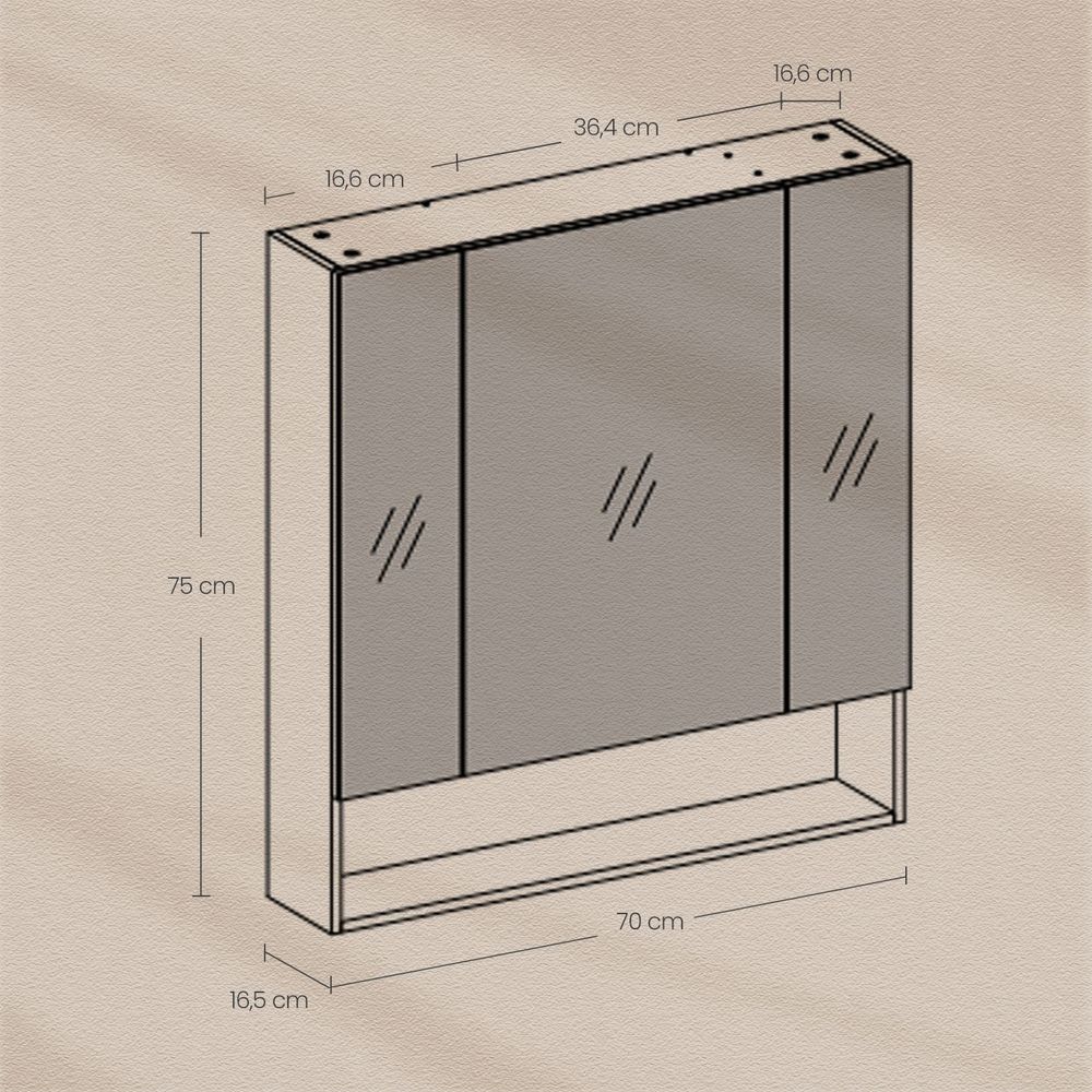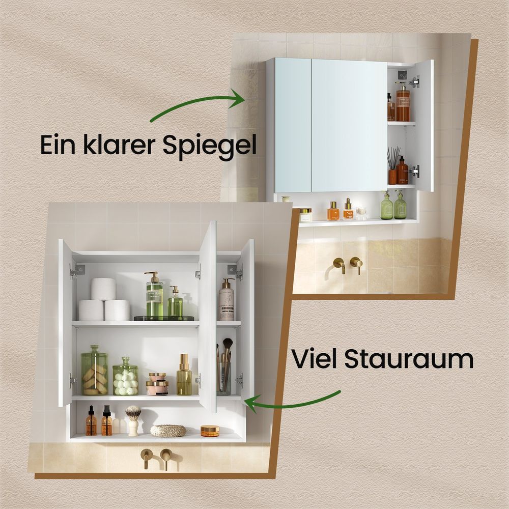 Duidelijk zicht rondom: Dankzij de 3 spiegeldeuren van deze kast geniet je van een duidelijk zicht rondom voor een perfecte verzorgingservaring.