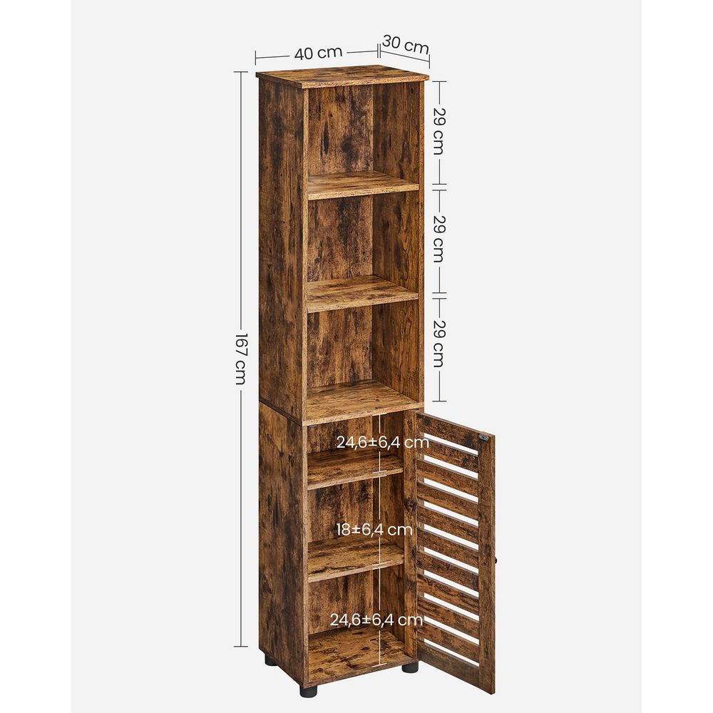 Geniet van het effect: de vintage bruine houttinten van deze hoge kast vormen een ideale achtergrond voor toiletartikelen in de badkamer, souvenirs in de woonkamer of je favoriete boeken in de slaapkamer. Laat je passies openlijk zien!