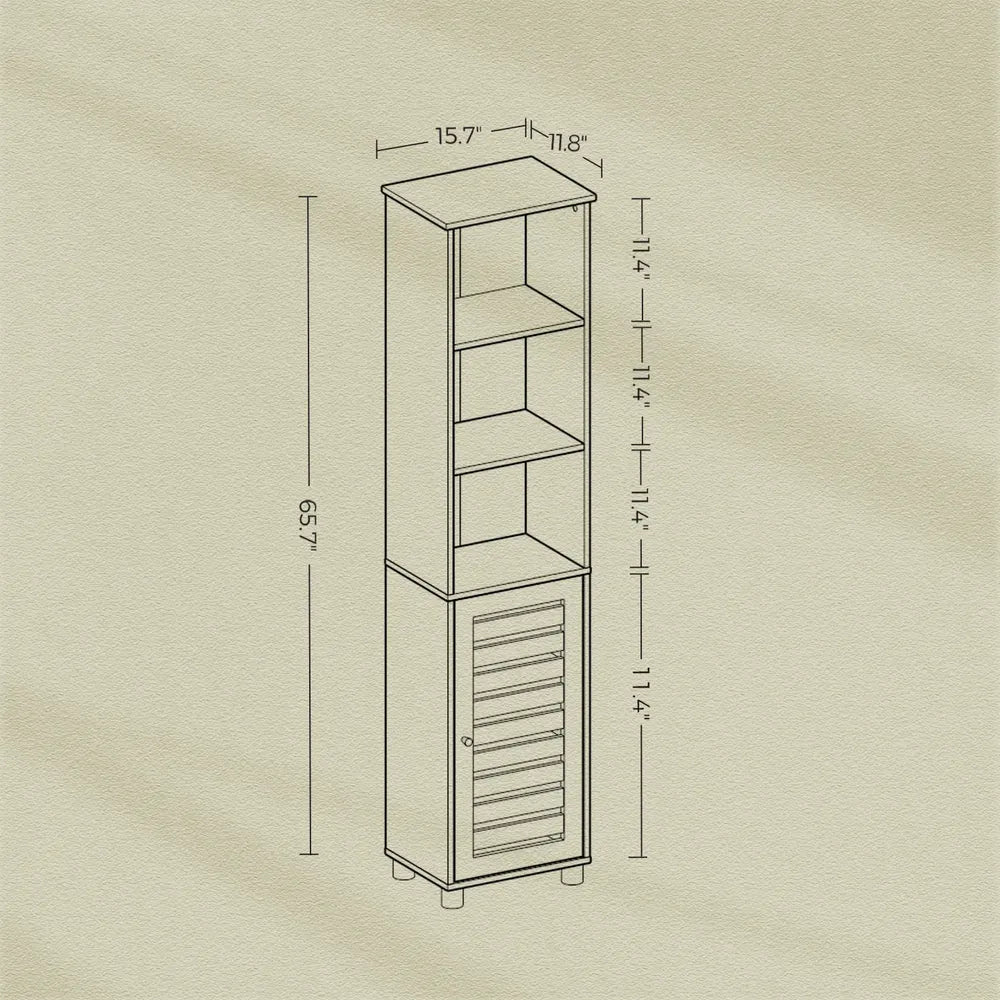 Ruime opbergruimte: Organiseer je badkamerbenodigdheden in het badkamerkastje met 3 open vakken voor veelgebruikte artikelen en 3 vakken achter de deur voor toiletpapier.
