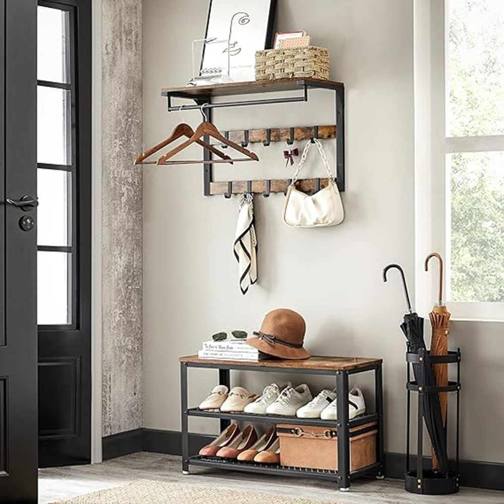SEGENN Catania Industriële Wandkapstok – Bruin-Zwart met Metalen Frame-Vintage Bruin-Zwart met Metaal