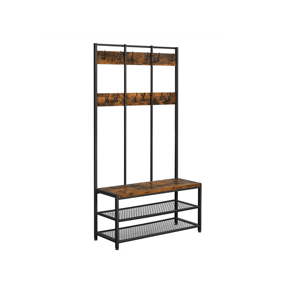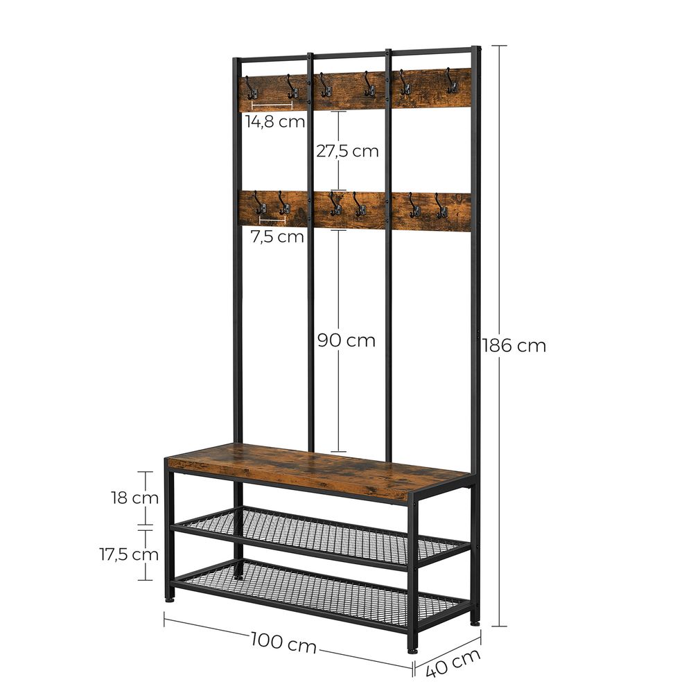 SEGENN Parma Kapstok en Schoenenbank in Industriële Stijl – Metaal & Hout-Halmeubel Industrieel – Kapstok met Zitbank en Schoenenrek