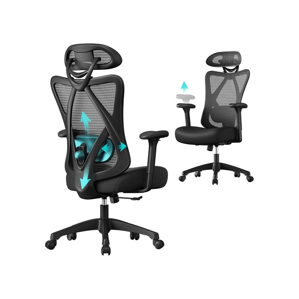 Ergonomisch kussen: Deze bureaustoel is voorzien van een zeer elastisch U-vormig kussen dat comfortabele ondersteuning biedt aan uw dijen en heupen. De ademende mesh rugleuning en hoofdsteun maken langdurig zitten ook gemakkelijker.