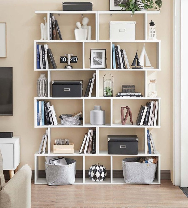 Deze boekenkast biedt meerdere planken en een stijlvol S-vormig ontwerp, wat u de veelzijdigheid en het gemak biedt waar doe-het-zelvers en decorateurs naar op zoek zijn. Gemaakt van stevig spaanplaat en afgewerkt in een decoratief wit, kan onze plank gebruikt worden als boekenplank, dvd-rek, kantoorplank of speelgoedplank.