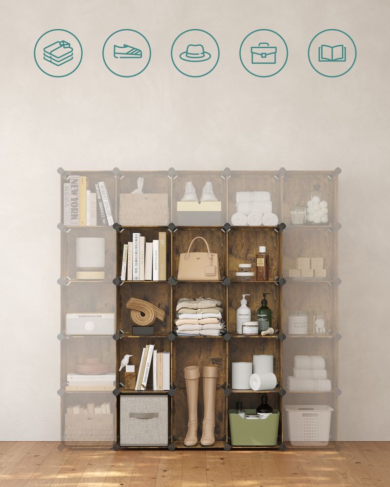 [Een echte alleskunner] Als je geen ruimtebesparende kast hebt, is dit doe-het-zelf-opbergsysteem perfect. De 16 vakken van 30 x 30 x 30 cm bieden ruimte aan kleding, schoenen, boeken, speelgoed of kookgerei.