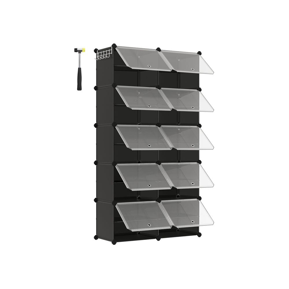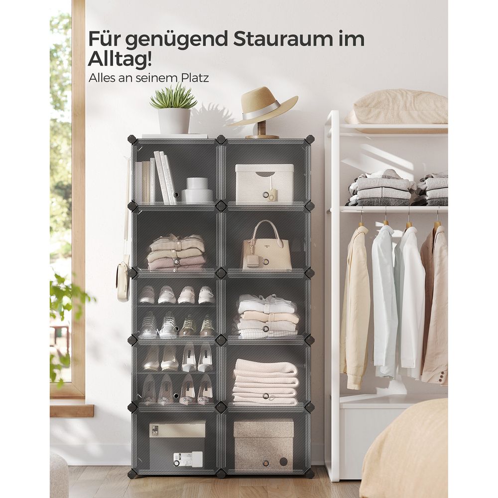 [Stabiel & veilig] Het schoenenrek, gemaakt van kunststof panelen met een frame van staaldraad, verbonden door hoogwaardige connectoren, is robuust en elk compartiment kan tot 5 kg dragen; de meegeleverde kantelbeveiliging zorgt voor een veilige omgeving.