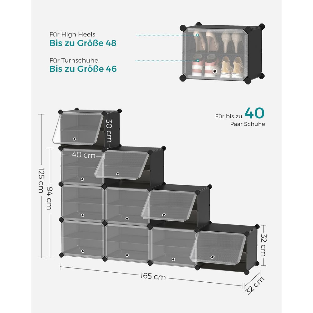 Segenn's Verona Schoenenrek met 10 Vakken – Zwart – Ruime Schoenenkast met Open Compartimenten