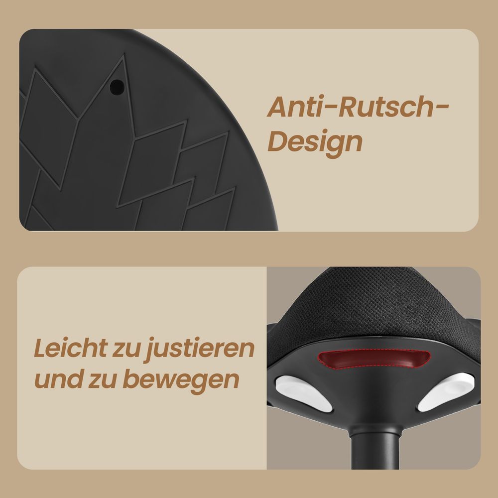 Ergonomische zitting: De zadelzitting met vormvast schuim zorgt voor aangenaam comfort en ondersteunt een gezonde zithouding in het dagelijks leven.
